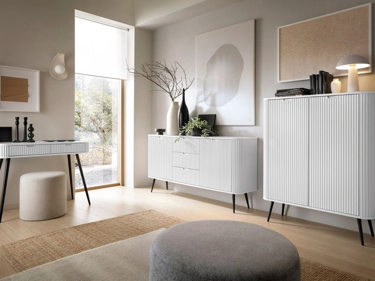 Wohnzimmer-Set – TV-Schrank und Kommode auf schwarzen Füßen Asumi Weiß und Eiche Wotan