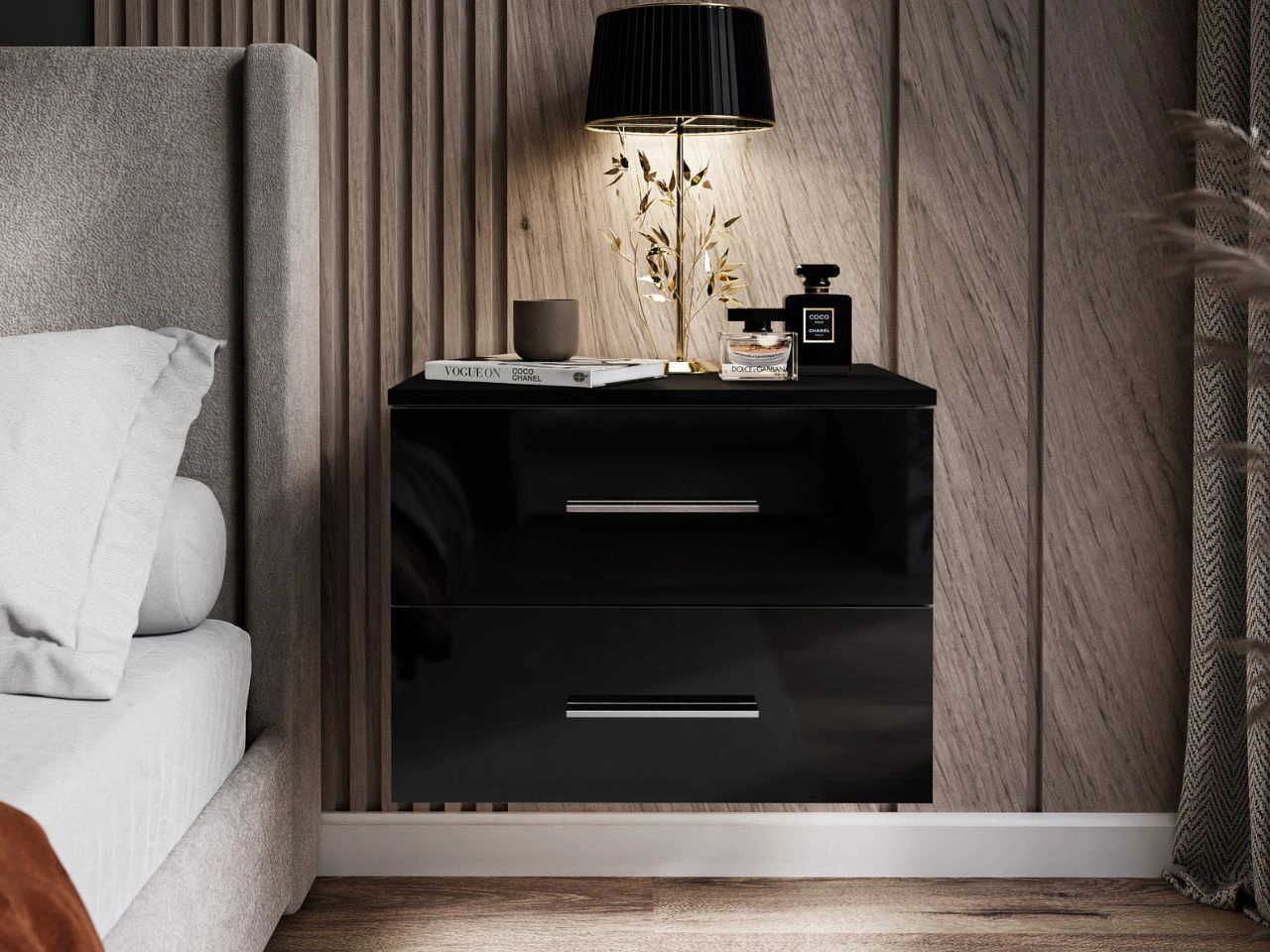 Hängender Nachttisch mit zwei Schubladen Nuveo Schwarz Hochglanz