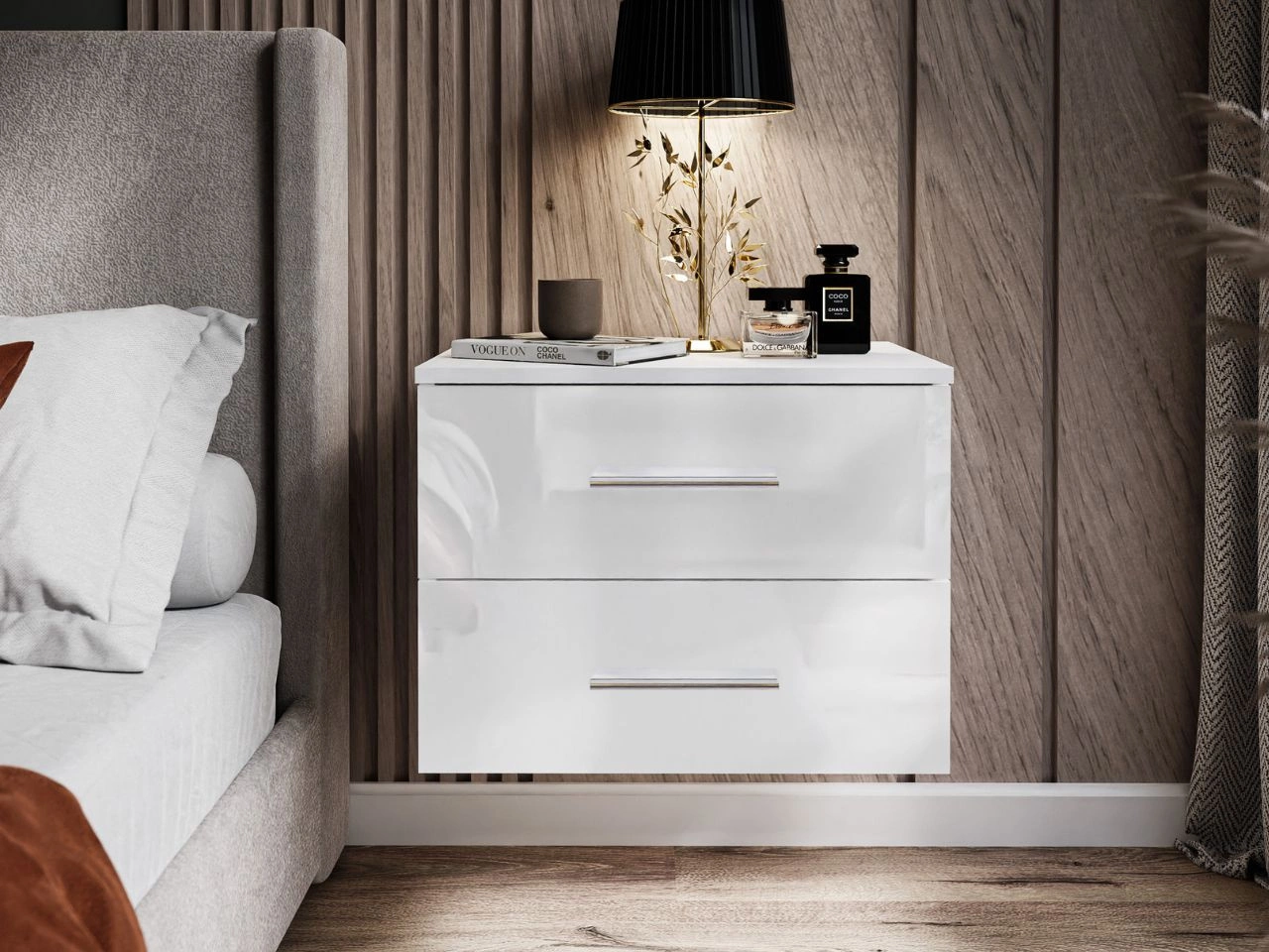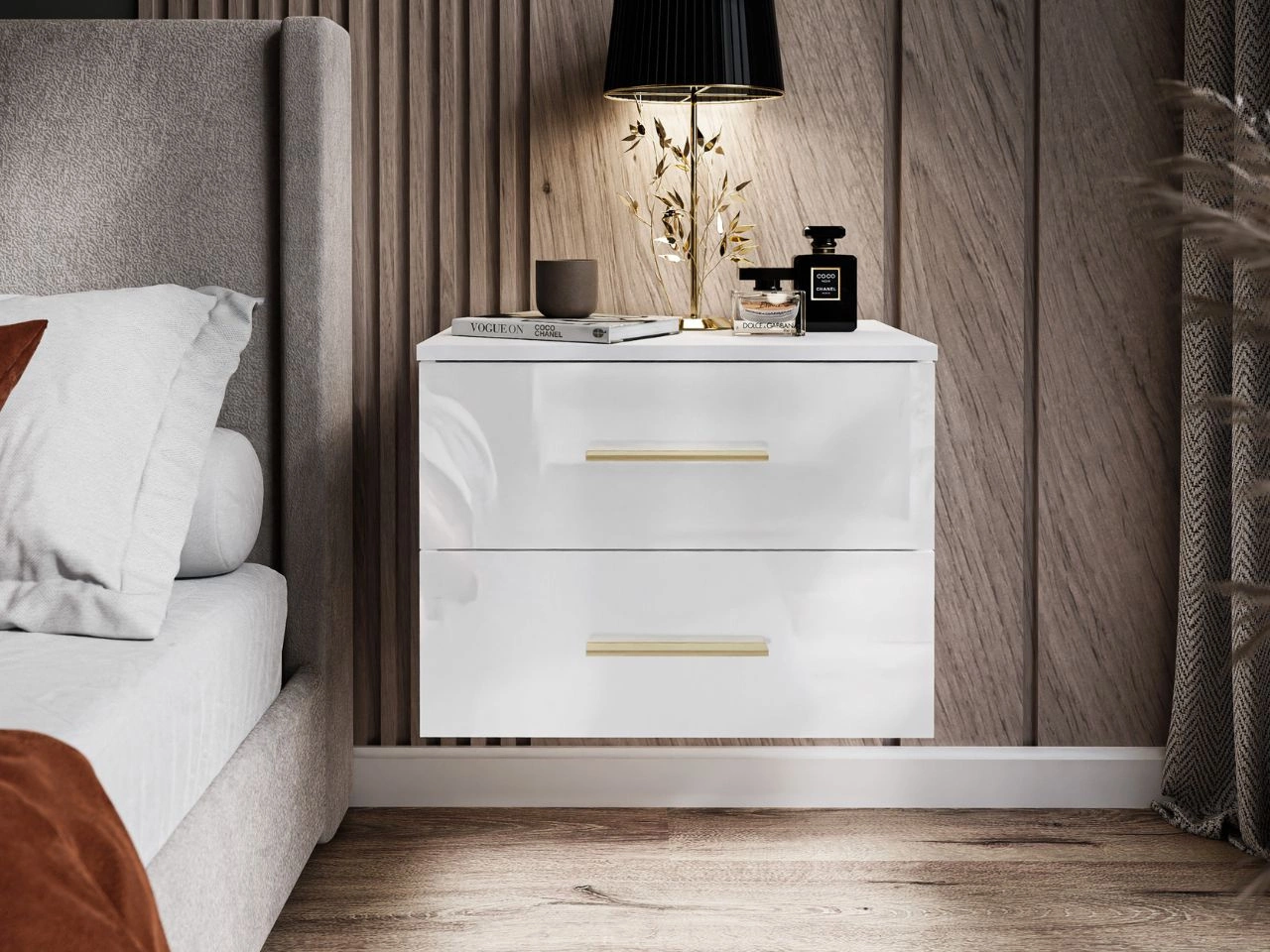 Hängender Nachttisch mit zwei Schubladen Nuveo Lux Weiß Hochglanz