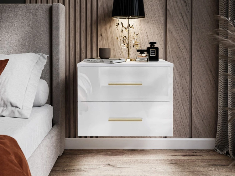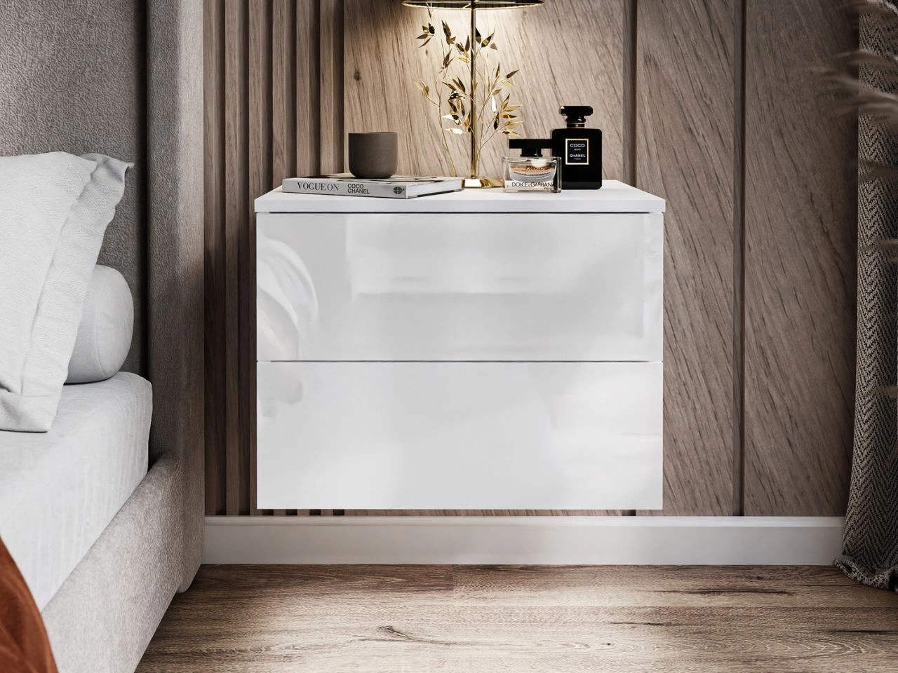 Anzahl der Produkte: 113Hängender Nachttisch mit zwei Schubladen Nuveo Weiß Hochglanz
