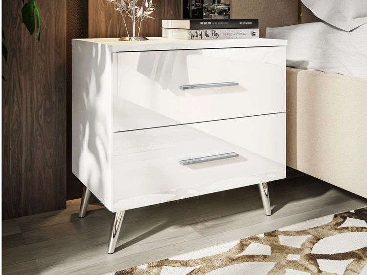 Anzahl der Produkte: 113Nachttisch mit Schubladen auf Silbernen Metallbeinen Nuveo Weiß Hochglanz