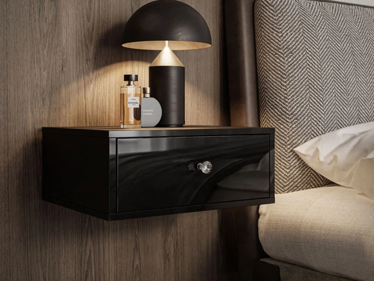 Hängender Nachttisch Glamour mit Schublade und LED-Beleuchtung Brisa Schwarz Hochglanz