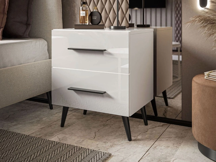 Nachttisch mit Schubladen auf Schwarzen Metallbeinen Nuveo Weiß Hochglanz