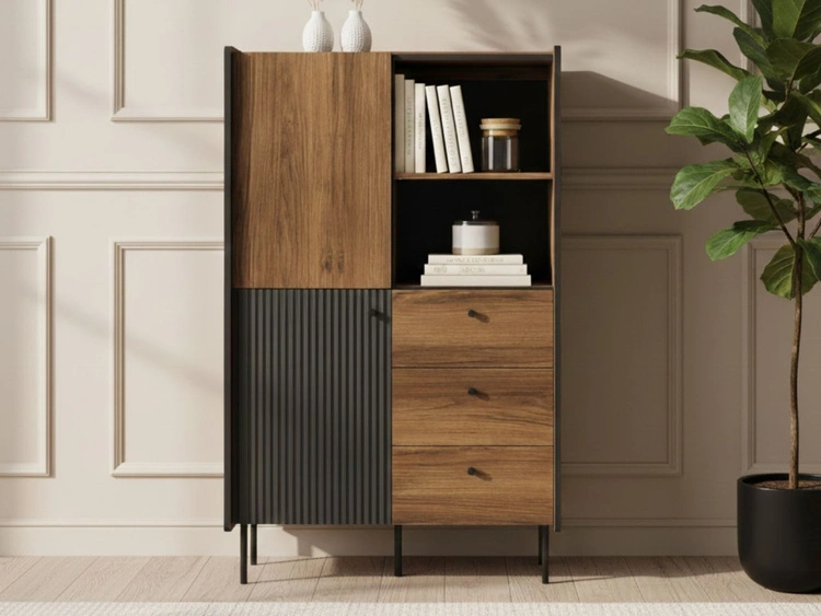 Rregal mit Regalböden und Schubladen Pascale Nussbaum Warmia, Schwarz