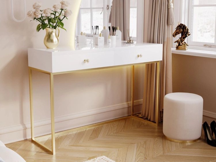 Schminktisch mit Schubladen Belleza Weiß Hochglanz Gold Frame