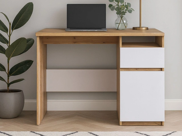 Schreibtisch mit Türe und Schublade Eiche Wotan, Weiß