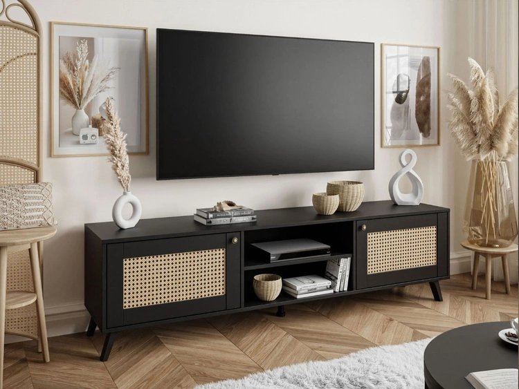 TV-Lowboard Boho mit zwei Türen und Front in Flechtoptik Bellance schwarz