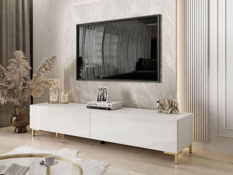 TV-Lowboard mit zwei Türen auf goldenen Beinen 175 cm Sorelle Weiß Hochglanz