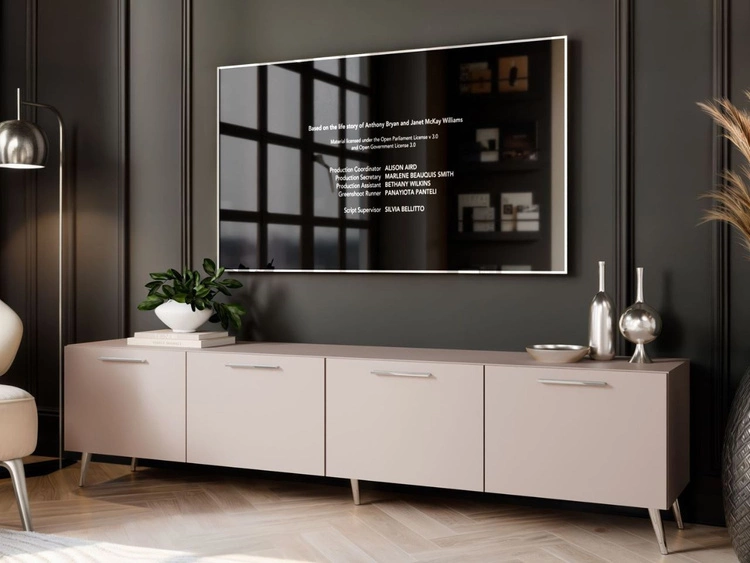 TV-Lowboard mit Türen und LED-Beleuchtung auf Silbernen Metallbeinen 200 cm Noaé Kaschmir