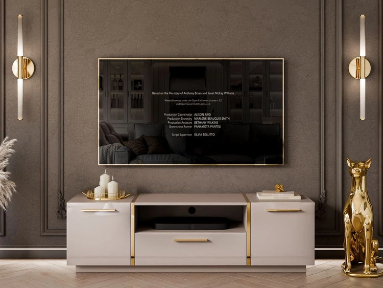 TV-Lowboard breit zweitürig mit Schublade und goldenen Metallfüßen Orlean Kaschmir Matt