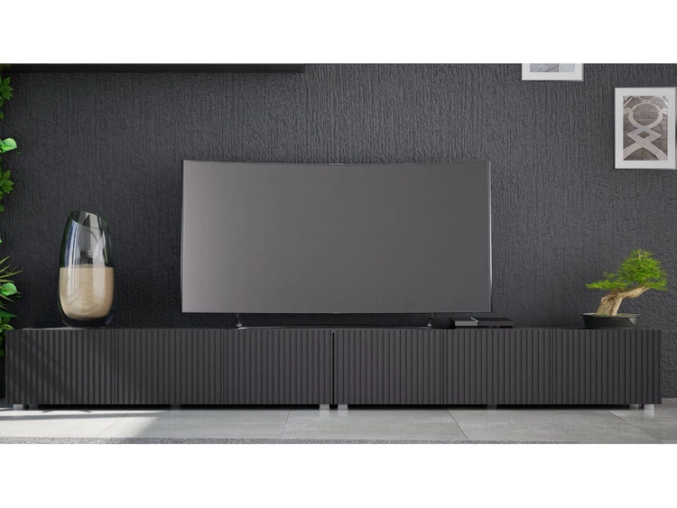 TV-Lowboard Hänge mit Türen 175 cm Diolo Schwarz mit geriffelter Vorderseite