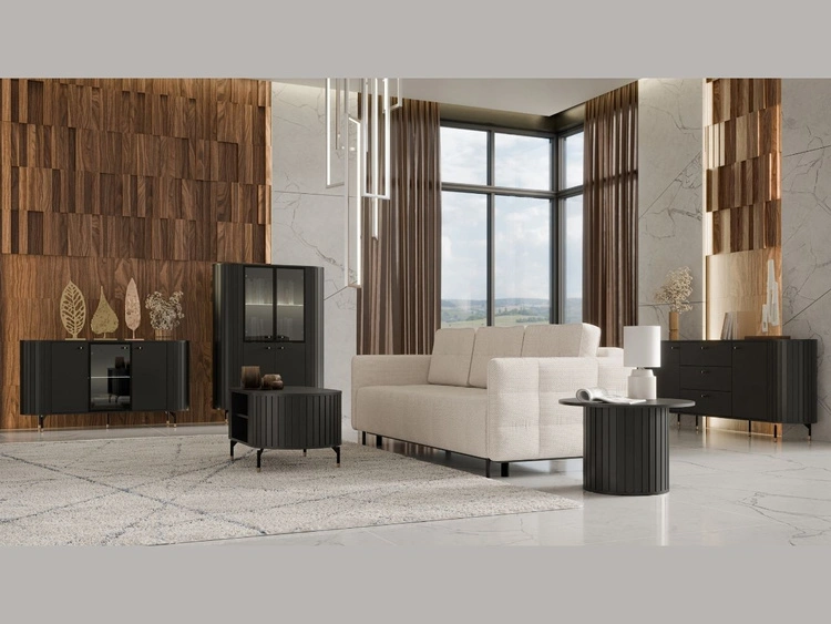 Set industriell anmutender Möbel für den Raum Lavore Wotan Eiche, Schwarz matt