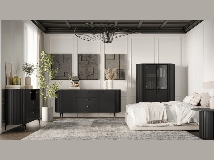 TV-Lowboard mit Schublade und Türen Messina Schwarz