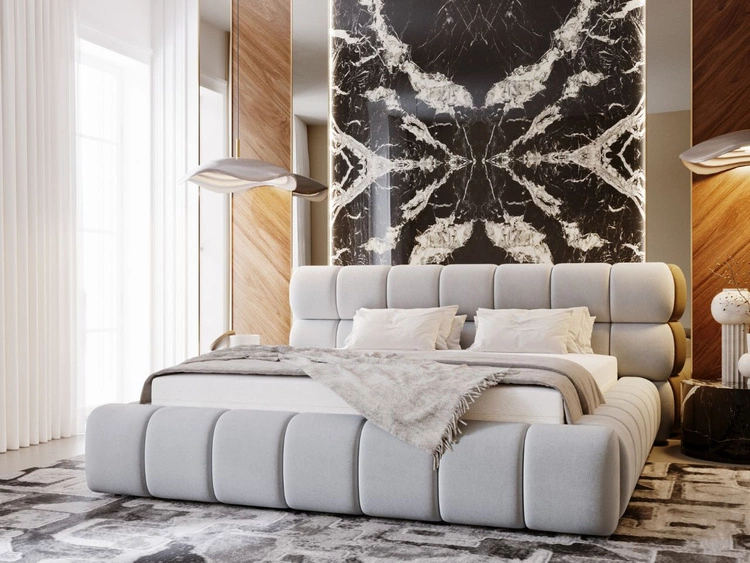 Polsterbett mit Bettkasten und Lattenrost 180x200 Mellow Hellgrau