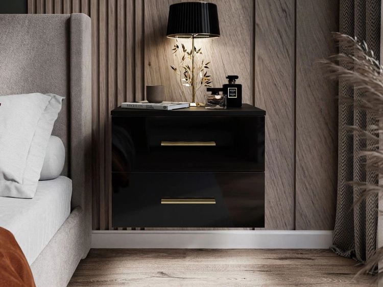 Anzahl der Produkte: 3458Hängender Nachttisch mit zwei Schubladen Nuveo Schwarz Hochglanz