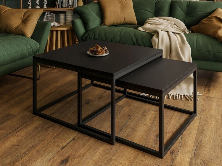 Couchtisch auf schwarzem Metallrahmen mit schwarzez Platte Asumi 36x42
