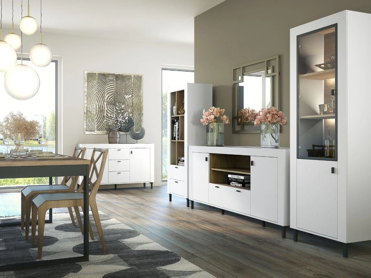 Set industriell anmutender Möbel für den Raum Lavore Wotan Eiche, Schwarz matt