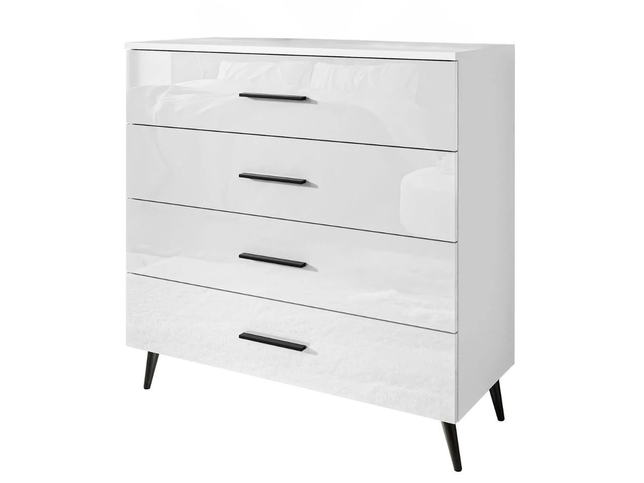 Kommode mit vier Schubladen und LED-Beleuchtung auf Schwarzen Metallbeinen Nuveo Weiß Hochglanz