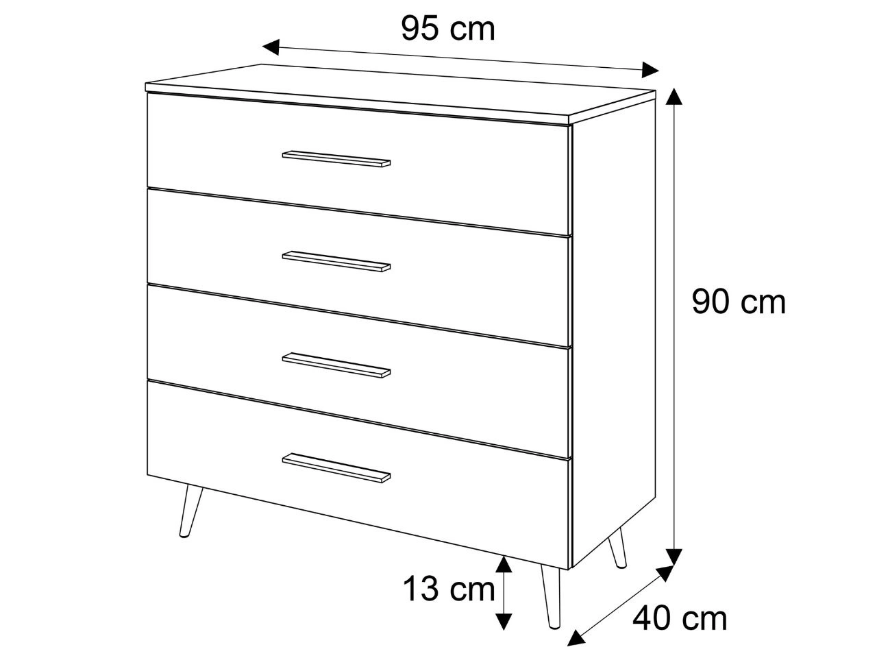 Kommode ist mit vier geräumigen Schubladen ausgestattet, die das Verstauen von Kleidung, Dokumenten, Accessoires oder kleinen Gegenständen erleichtern. Die breite Ablagefläche eignet sich perfekt für Dekorationen, Pflanzen oder Familienfotos.