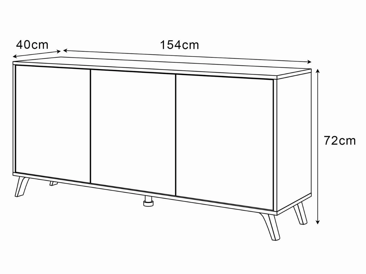 Die Kommode Vivance zeichnet sich durch ein minimalistisches Design aus, das perfekt mit modernen Interieurs harmoniert. Das Modell ist mit drei Türen ausgestattet, hinter denen sich drei Einlegeböden befinden. Die Türen verfügen über ein grifflose Öffnungssystem Push to Open – drücken, um zu öffnen. Gefertigt ist die Kommode aus hochwertiger, laminierter Möbelplatte; die Kanten sind mit ABS-Umleimer geschützt, der Kratzer und kleine mechanische Beschädigungen verhindert.