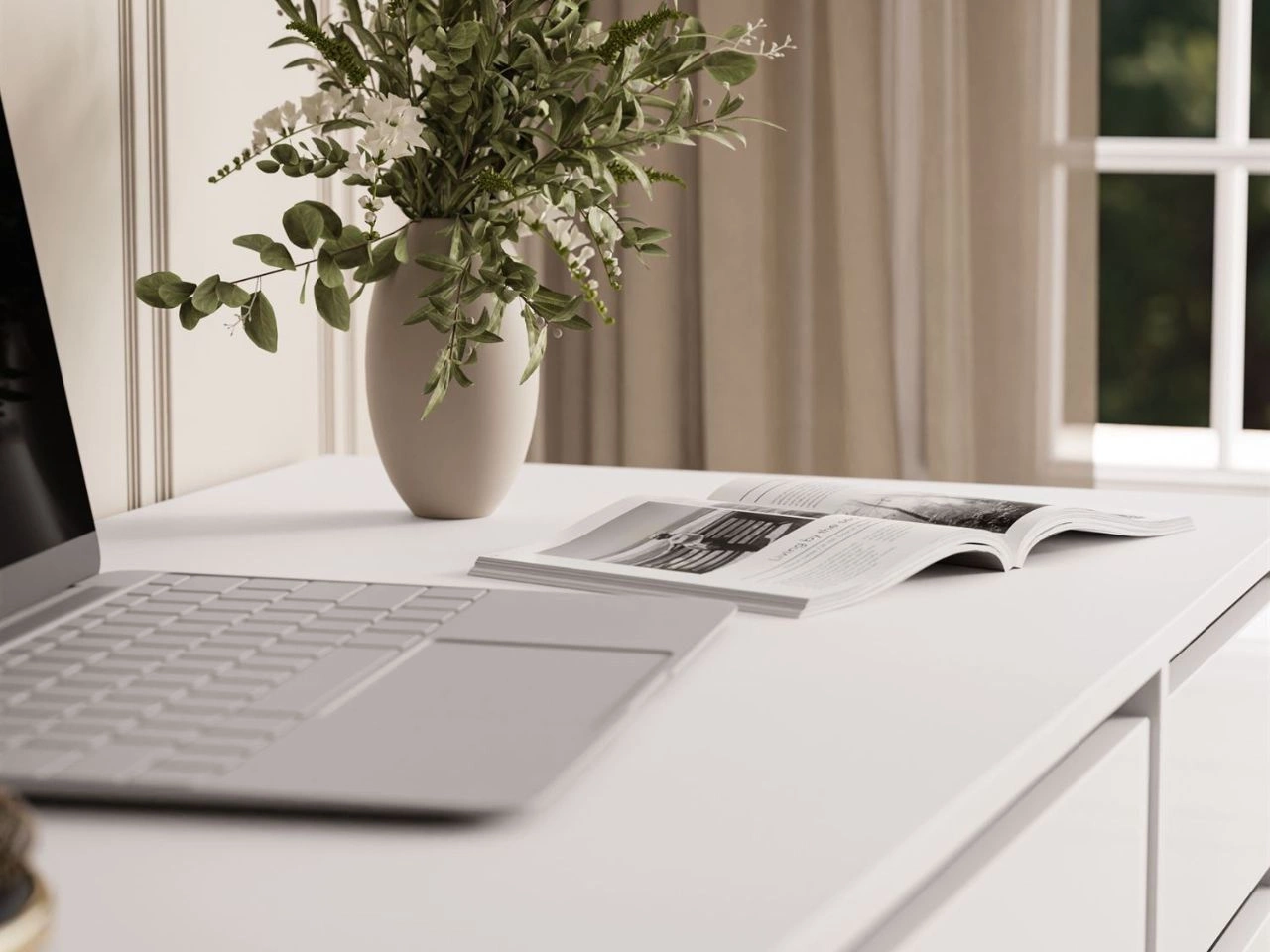 Der stilvolle und moderne Schreibtisch Melo ist eine hervorragende Wahl sowohl für das Arbeitszimmer als auch für das Jugendzimmer oder Schlafzimmer. Im Schlafzimmer eignet er sich zudem perfekt als Frisiertisch – einfach mit einem Spiegel kombinieren und fertig.