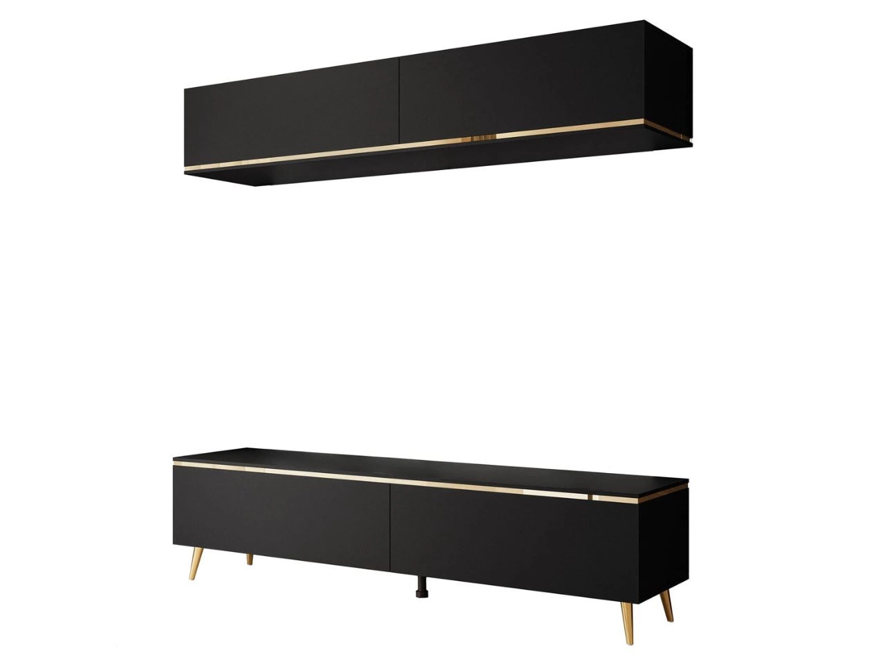 Du ziehst an: Wohnwand aud goldenen Beinen für das Wohnzimmer Evare Schwarz matt