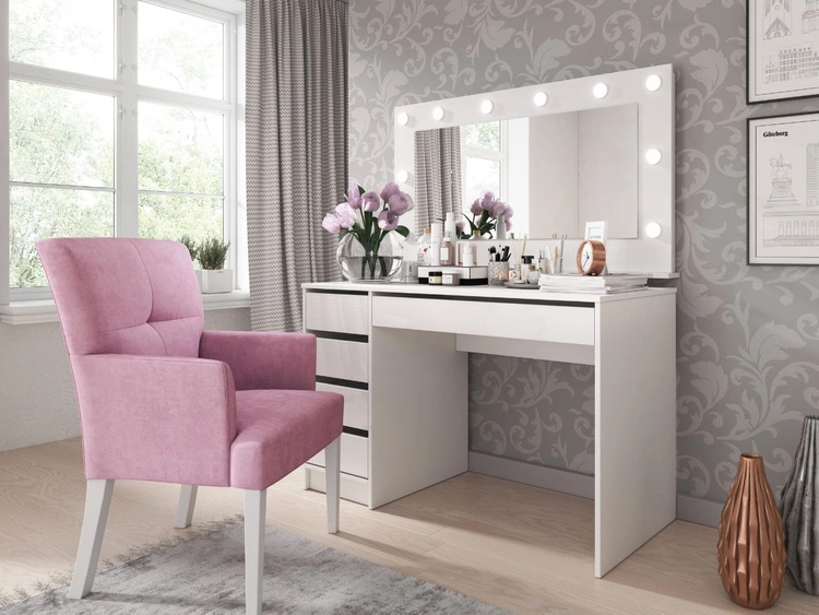 Schminktisch mit Spiegel Anes Weiß Glanz