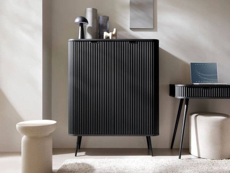 Anzahl der Produkte: 5Kommode mit Türen und Schubladen Viva Schwarz auf Schwarzen Beinen