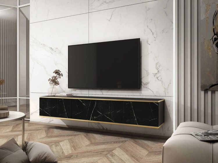 TV-Lowboard Hänge mit Türen 175 cm Diolo Schwarzer Marmor mit glatter Front