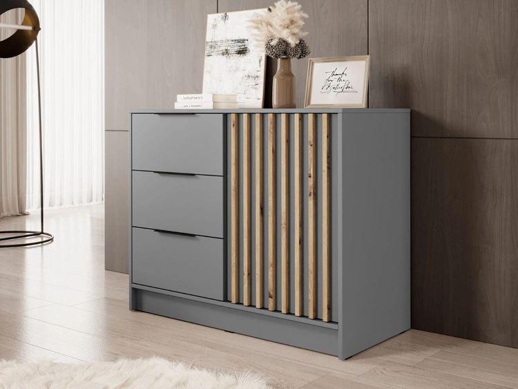 Kommode mit Türe und Schubladen 105 cm Macron Grau Artisan Eiche