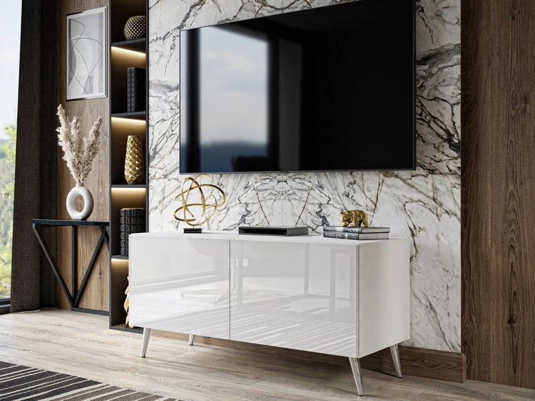 Anzahl der Produkte: 30TV-Lowboard mit Türen auf Silbernen Metallbeinen 100 cm Noaé Weiß Hochglanz