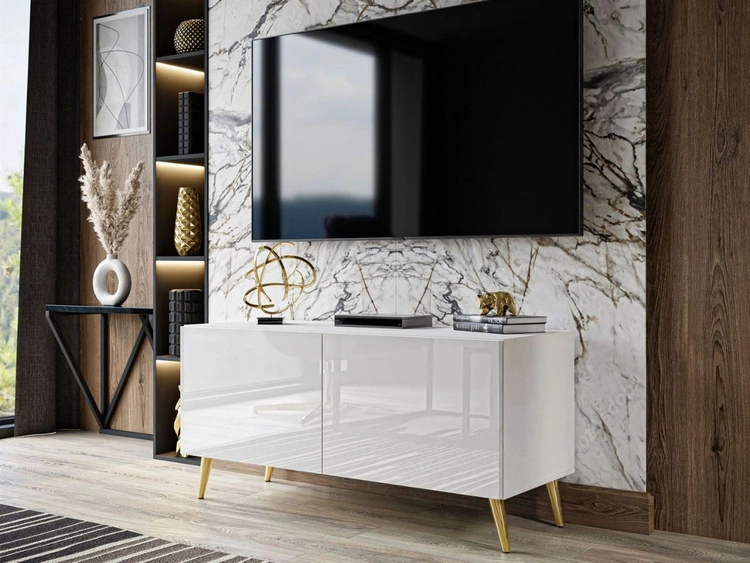 TV-Lowboard mit Türen auf Goldenen Metallbeinen 100 cm Noaé Weiß Hochglanz
