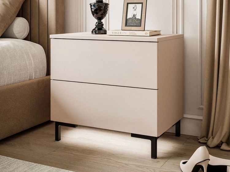Nachttisch mit zwei Schubladen auf Schwarzen Beinen Nuveo Kaschmir