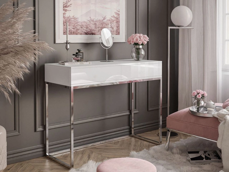 Konsolentisch mit Schubladen und silbernem Gestell im Glamour-Stil Brisa Weiß Hochglanz