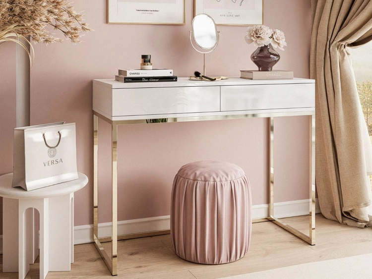 Konsolentisch mit Schubladen und goldenem Gestell im Glamour-Stil Brisa Weiß Hochglanz