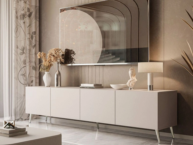 TV-Lowboard mit Türen auf Silbernen Metallbeinen 200 cm Nodoo Kaschmir
