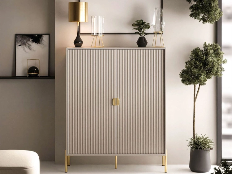 Hohe Kommode, zweitürig, mit goldfarbenen Griffen, Orlean Kaschmir matt