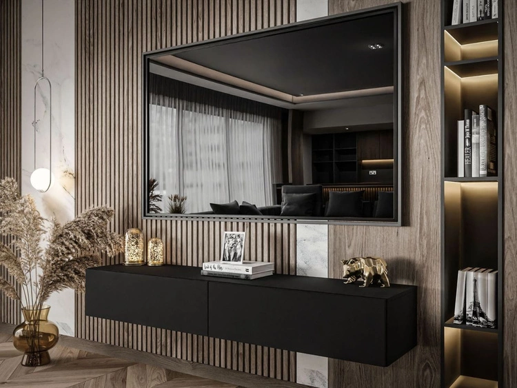 Hängendes TV-Lowboard mit zwei Türen 175 cm mit LED-Beleuchtung Sorelle Schwarz Matt