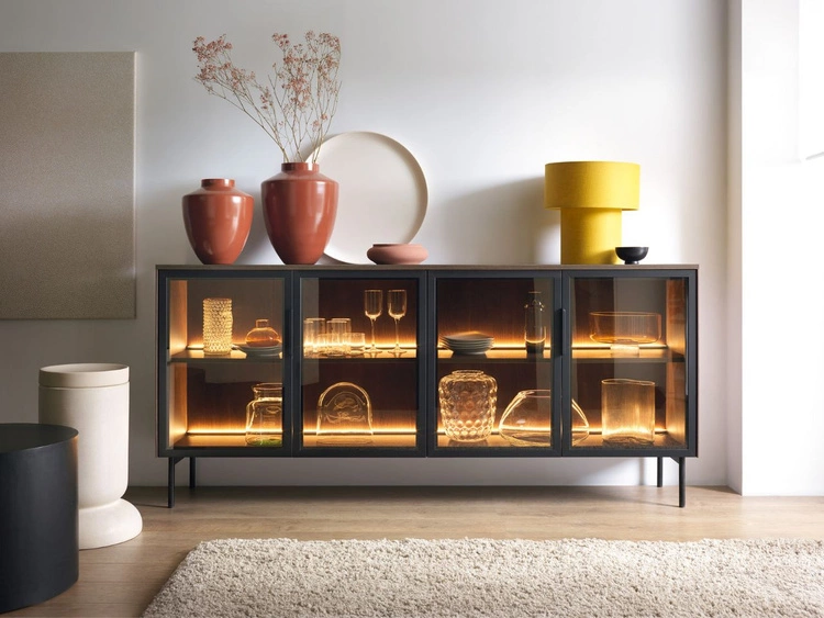 Anzahl der Produkte: 5Glasvitrine mit Schubladen und LED-Beleuchtung Lumina Eiche Dunin
