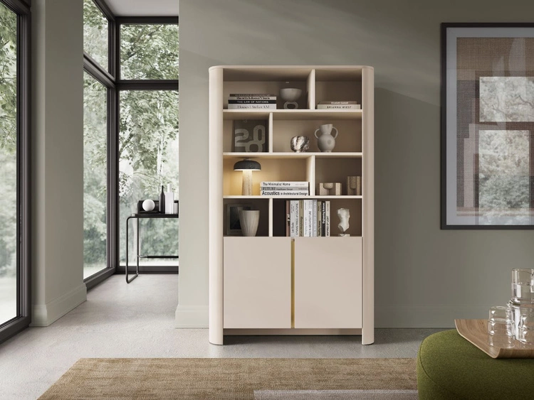 Bücherregal mit Türen und einer goldenen Zierleiste Brillo Kaschmir