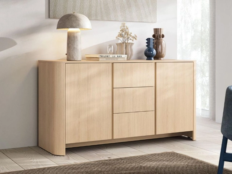 Anzahl der Produkte: 6Vier-Tür-Kommode mit goldener Dekorleiste Brillo Vicenza-Eiche