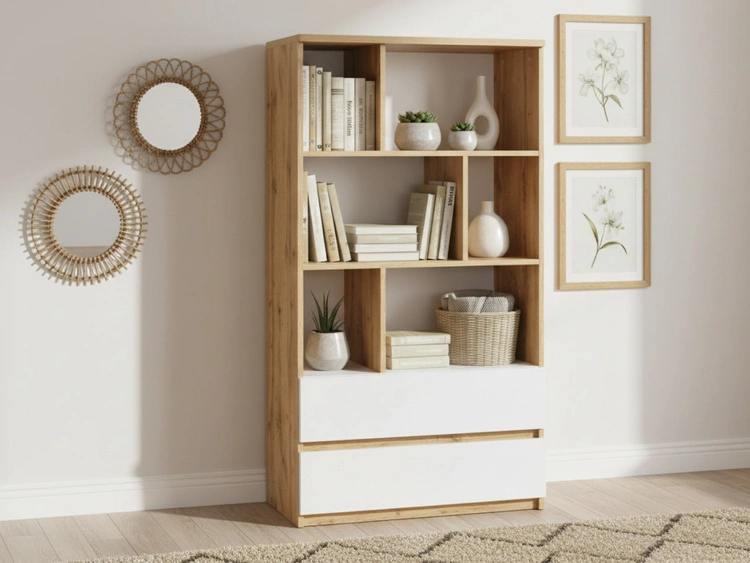 Regal mit Schubladen Arcadia Eiche Wotan, Weiß