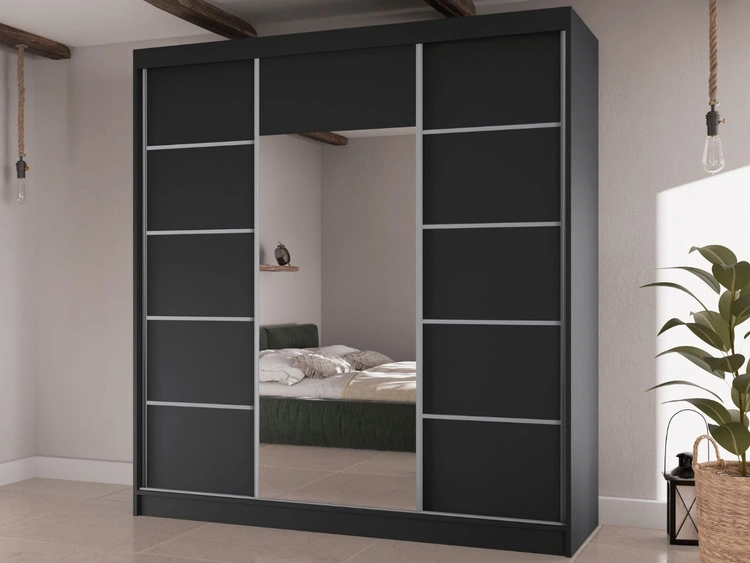 Schiebetürenschrank mit Spiegel 200 cm Maia Schwarz
