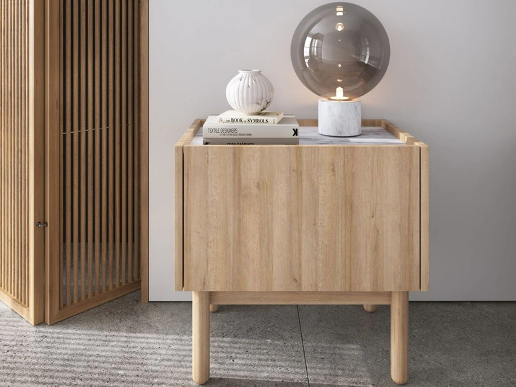 Nachttisch mit Regal Braha Riviera Eiche, Marmor Bianco