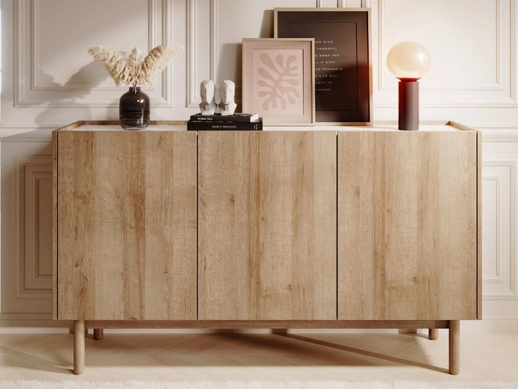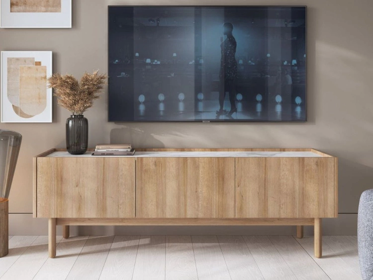 TV-Lowboard mit Türen Braha Riviera Eiche, Marmor Bianco