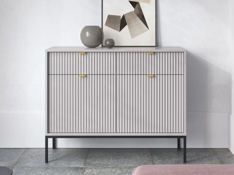 Kommode mit Türen und Schubladen Amber Grau, Schwarz Frame
