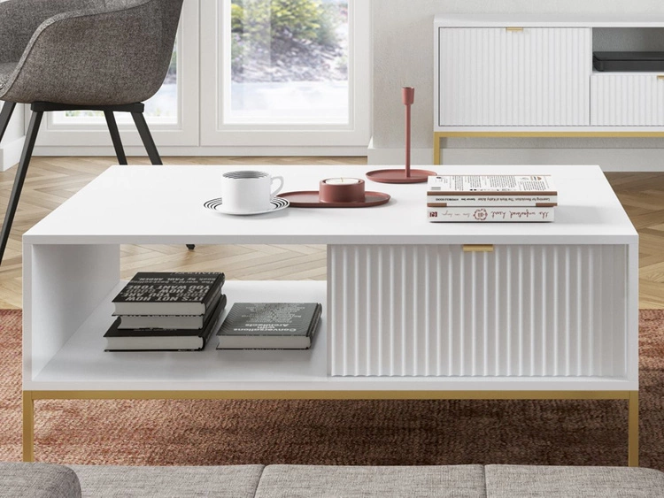 Anzahl der Produkte: 7Couchtisch mit Stauraum Amber Weiß, Gold Frame