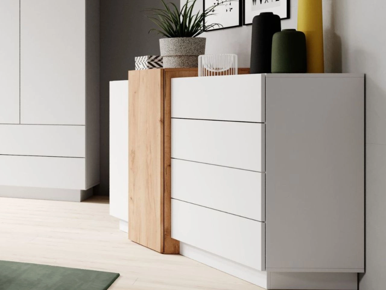 Anzahl der Produkte: 6Kommode mit Türen und Schubladen Morten Weiß, Goldene Craft Eiche