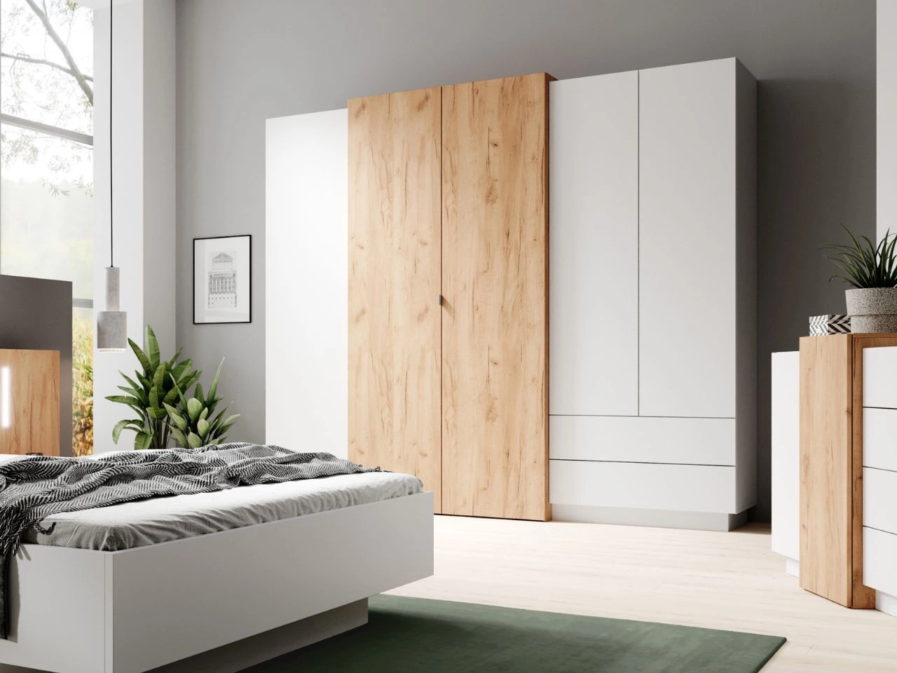 Holzbett mit Nachttischen Morten Weiß Goldene Craft Eiche