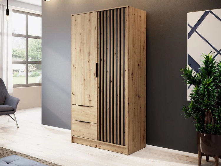 Kommode mit Türe und Schubladen 105 cm Macron Arisan Eiche Schwarz